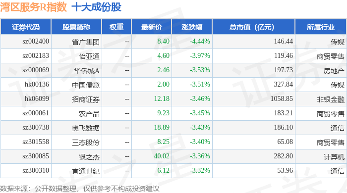 湾区服务R(480011)指数十大成份股详情如下: