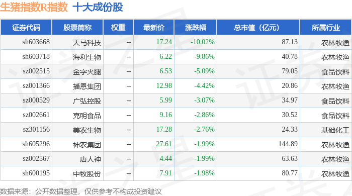 近10日内生猪指数R(480073)指数成份股做了调整,新纳入了4只股票。