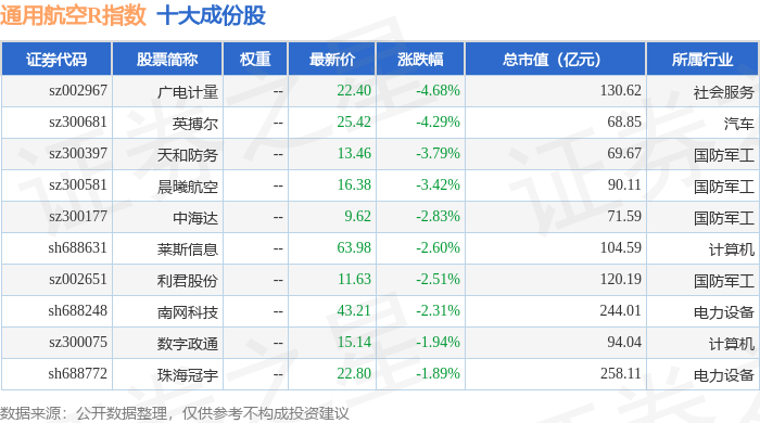 近10日内通用航空R(480076)指数成份股做了调整,新纳入了2只股票。