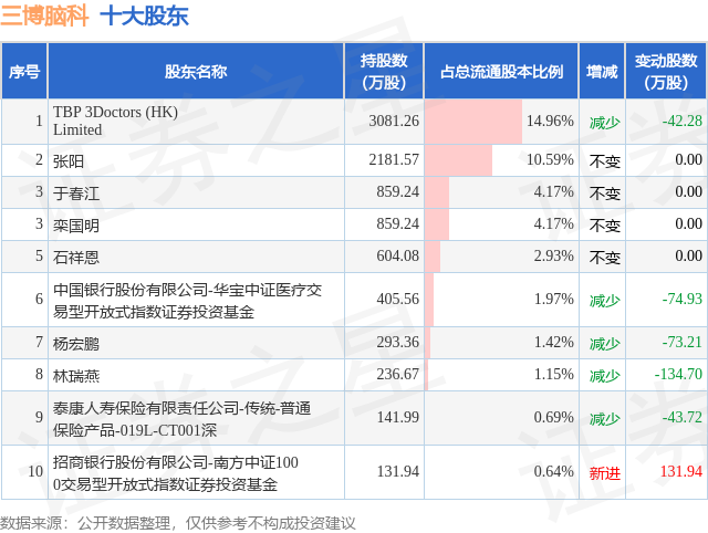 根据三博脑科2025年三季报公布的十大股东详情如下: