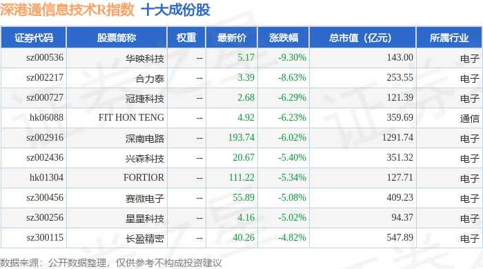 深港通信息技术R(483027)指数十大成份股详情如下: