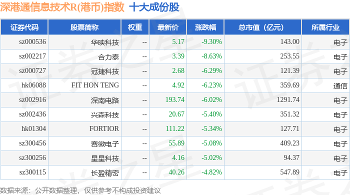 深港通信息技术R(港币)(483028)指数十大成份股详情如下: