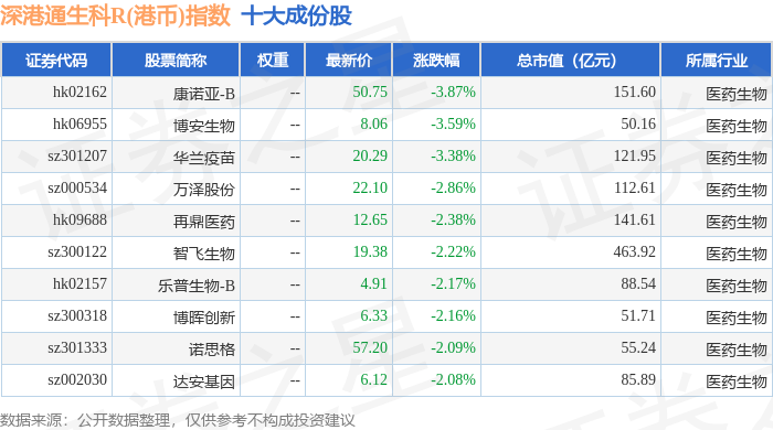 深港通生科R(港币)(483060)指数十大成份股详情如下: