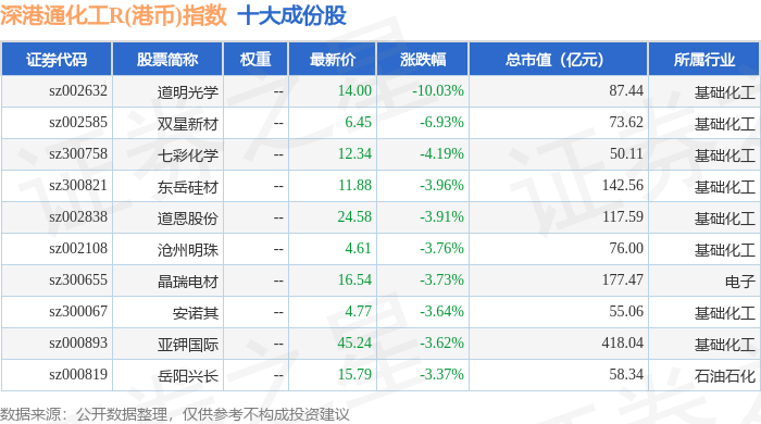 深港通化工R(港币)(483064)指数十大成份股详情如下: