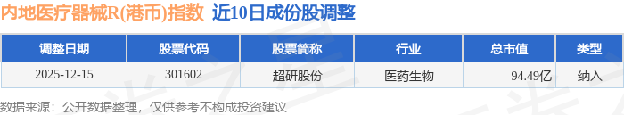 近10日内内地医疗器械R(港币)(483104)指数成份股做了调整,新纳入了1只股票。