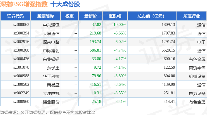 深指ESG增强(970032)指数十大成份股详情如下: