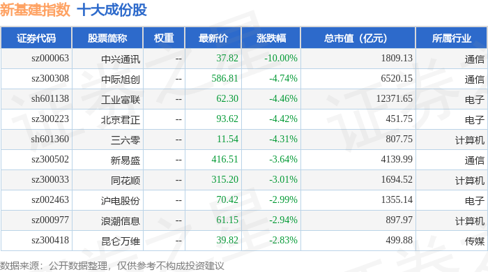 近10日内新基建(980029)指数成份股做了调整,新纳入了7只股票,剔除了1只股票。