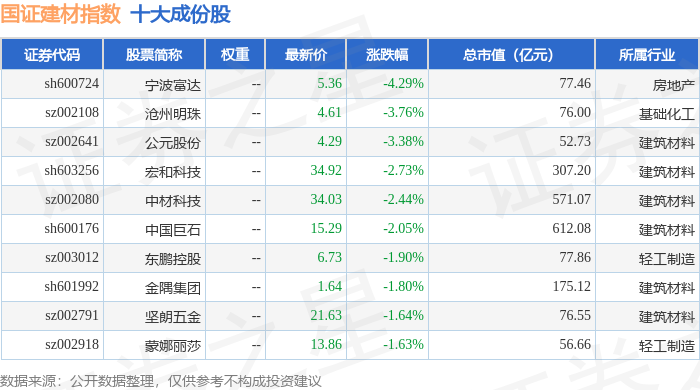 近10日内国证建材(980048)指数成份股做了调整,新纳入了3只股票。