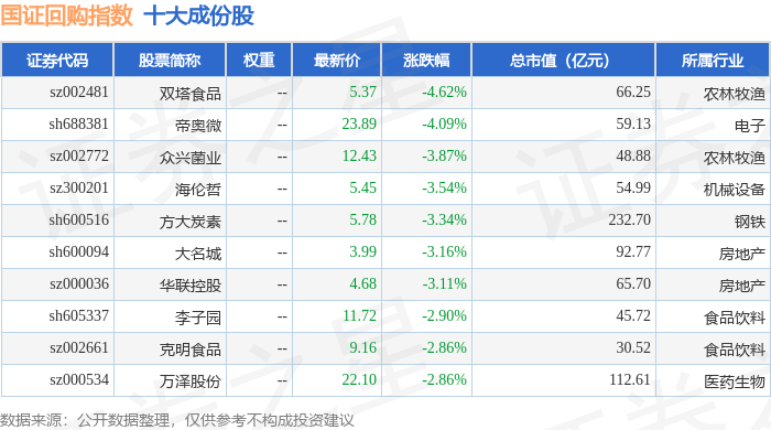 国证回购(980063)指数十大成份股详情如下: