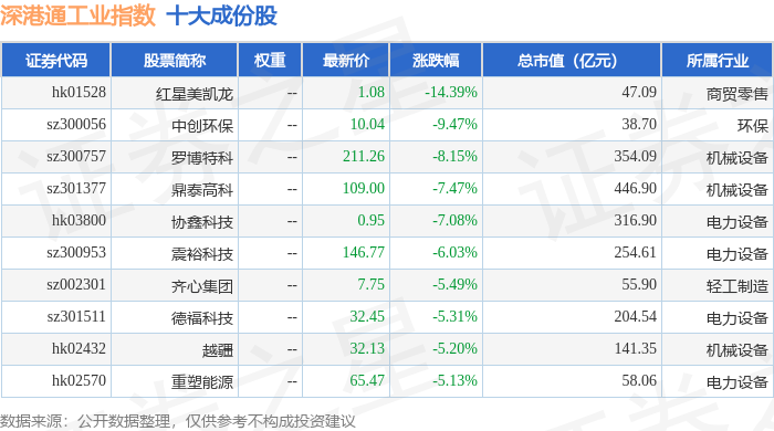 深港通工业(983017)指数十大成份股详情如下: