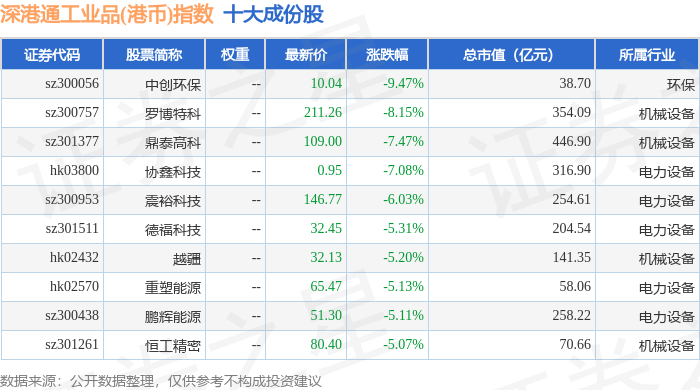 深港通工业品(港币)(983070)指数十大成份股详情如下: