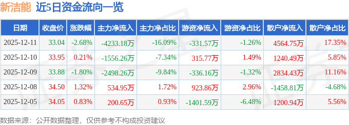 证券之星消息,截至2025年12月11日收盘,新洁能(605111)报收于33.04元,下跌2.68%,换手率1.89%,成交量7.85万手,成交额2.63亿元。