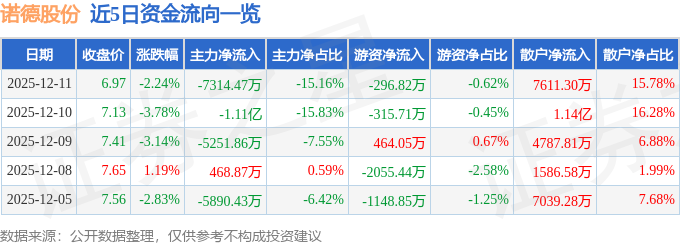 12月11日的资金流向数据方面,主力资金净流出7314.47万元,占总成交额15.16%,游资资金净流出296.82万元,占总成交额0.62%,散户资金净流入7611.3万元,占总成交额15.78%。