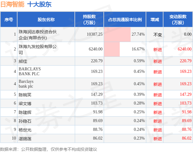 根据日海智能2025年三季报公布的十大股东详情如下: