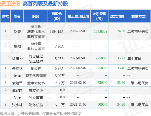 振江股份近半年内的董监高及核心技术人员增减持详情如下: