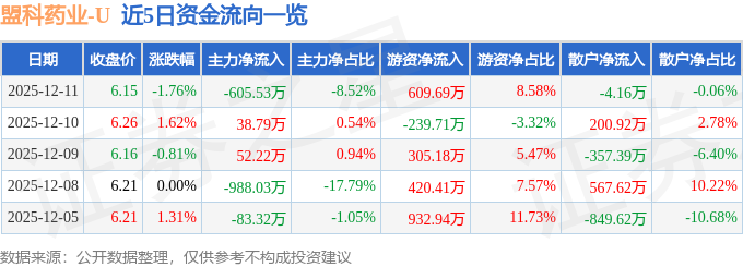 12月11日的资金流向数据方面,主力资金净流出605.53万元,占总成交额8.52%,游资资金净流入609.69万元,占总成交额8.58%,散户资金净流出4.16万元,占总成交额0.06%。