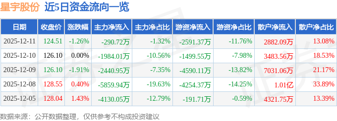 证券之星消息,截至2025年12月11日收盘,星宇股份(601799)报收于124.51元,下跌1.26%,换手率0.62%,成交量1.76万手,成交额2.2亿元。