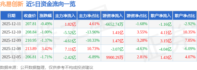 12月11日的资金流向数据方面,主力资金净流入1.82亿元,占总成交额4.61%,游资资金净流出6652.74万元,占总成交额1.68%,散户资金净流出1.16亿元,占总成交额2.92%。