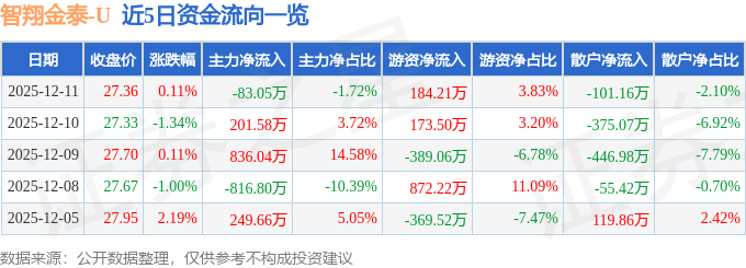 证券之星消息,截至2025年12月11日收盘,智翔金泰(688443)报收于27.36元,上涨0.11%,换手率1.51%,成交量1.76万手,成交额4814.76万元。