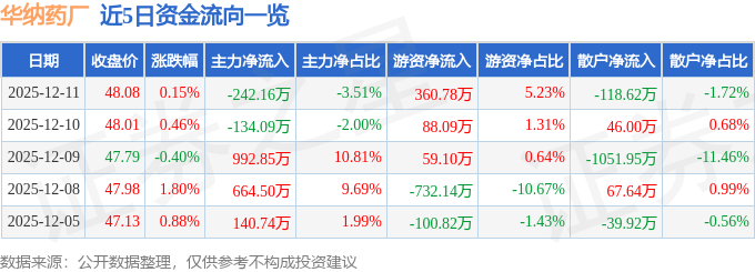 证券之星消息,截至2025年12月11日收盘,华纳药厂(688799)报收于48.08元,上涨0.15%,换手率1.09%,成交量1.43万手,成交额6904.43万元。