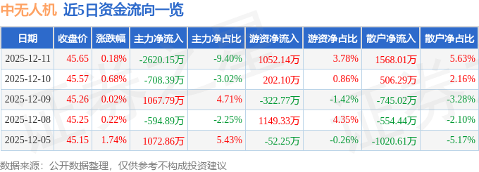 证券之星消息,截至2025年12月11日收盘,中无人机(688297)报收于45.65元,上涨0.18%,换手率0.9%,成交量6.09万手,成交额2.79亿元。