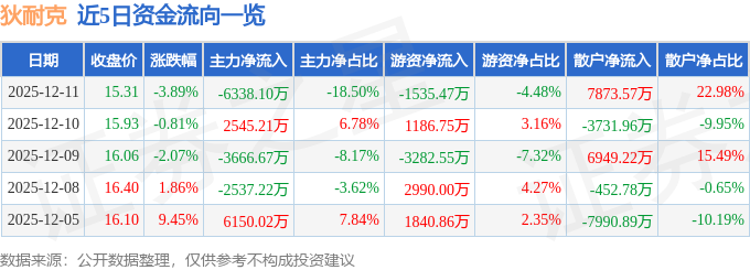 12月11日的资金流向数据方面,主力资金净流出6338.1万元,占总成交额18.5%,游资资金净流出1535.47万元,占总成交额4.48%,散户资金净流入7873.57万元,占总成交额22.98%。