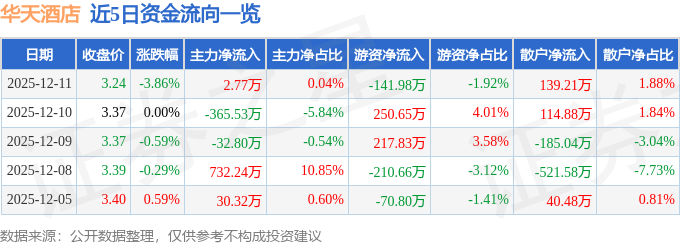 证券之星消息,截至2025年12月11日收盘,华天酒店(000428)报收于3.24元,下跌3.86%,换手率2.22%,成交量22.61万手,成交额7404.94万元。
