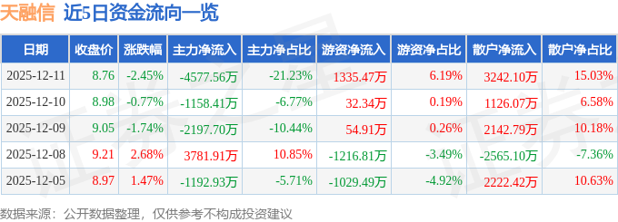 12月11日的资金流向数据方面,主力资金净流出4577.56万元,占总成交额21.23%,游资资金净流入1335.47万元,占总成交额6.19%,散户资金净流入3242.1万元,占总成交额15.03%。