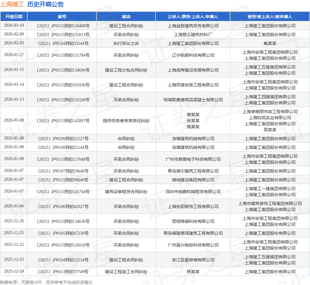 证券之星消息,根据天眼查APP显示,近日公布了一则上海建工集团股份有限公司作为被告/被上诉人的开庭公告,详细内容如下: