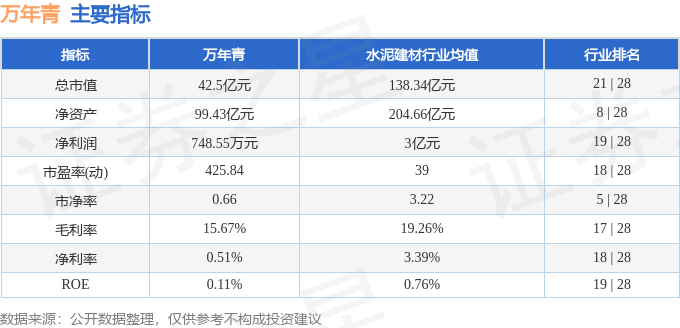 万年青2025年三季报显示,前三季度公司主营收入33.28亿元,同比下降17.18%;归母净利润748.55万元,同比上升7.27%;扣非净利润-3868.6万元,同比下降30.76%;其中2025年第三季度,公司单季度主营收入11.16亿元,同比下降21.93%;单季度归母净利润-3328.53万元,同比下降708.62%;单季度扣非净利润-3945.51万元,同比下降589.13%;负债率37.07%,投资收益1733.47万元,财务费用2933.27万元,毛利率15.67%。万年青(000789)主营业务:硅酸盐水泥、商品混凝土、骨料及新型墙材的生产及销售。