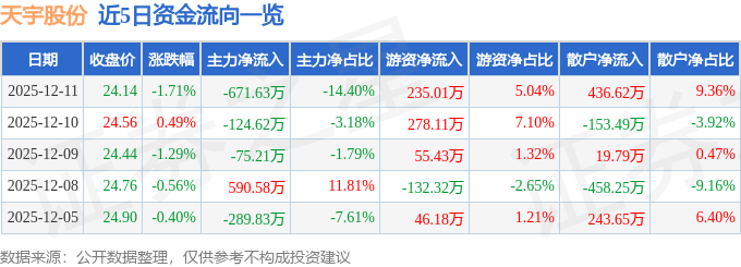 12月11日的资金流向数据方面,主力资金净流出671.63万元,占总成交额14.4%,游资资金净流入235.01万元,占总成交额5.04%,散户资金净流入436.62万元,占总成交额9.36%。