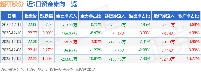 12月11日的资金流向数据方面,主力资金净流出13.32万元,占总成交额0.73%,游资资金净流出53.79万元,占总成交额2.95%,散户资金净流入67.11万元,占总成交额3.68%。