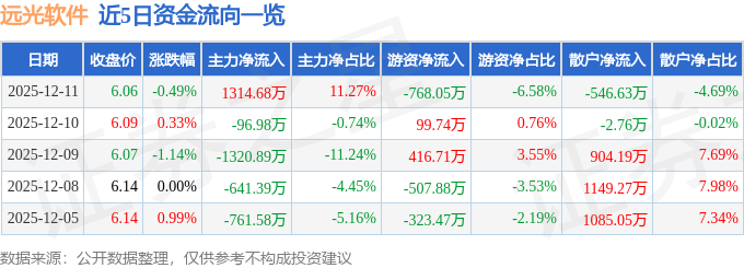 证券之星消息,截至2025年12月11日收盘,远光软件(002063)报收于6.06元,下跌0.49%,换手率1.09%,成交量19.23万手,成交额1.17亿元。