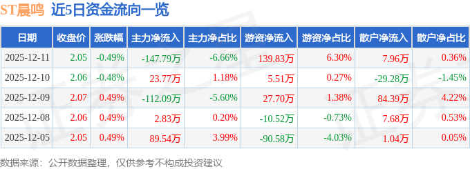 12月11日的资金流向数据方面,主力资金净流出147.79万元,占总成交额6.66%,游资资金净流入139.83万元,占总成交额6.3%,散户资金净流入7.96万元,占总成交额0.36%。