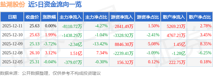 证券之星消息,截至2025年12月11日收盘,盐湖股份(000792)报收于25.63元,上涨0.0%,换手率1.38%,成交量73.05万手,成交额18.98亿元。