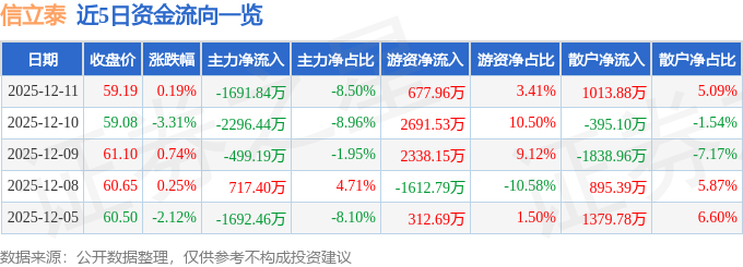 12月11日的资金流向数据方面,主力资金净流出1691.84万元,占总成交额8.5%,游资资金净流入677.96万元,占总成交额3.41%,散户资金净流入1013.88万元,占总成交额5.09%。