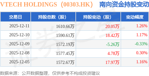 证券之星消息,12月11日南向资金增持20.05万股VTECH HOLDINGS(00303.HK)。近5个交易日中,获南向资金增持的有4天,累计净增持55.96万股。近20个交易日中,获南向资金增持的有16天,累计净增持134.18万股。截至目前,南向资金持有VTECH HOLDINGS(00303.HK)1610.66万股,占公司已发行普通股的6.36%。