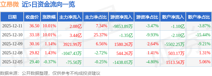 证券之星消息,截至2025年12月11日收盘,立昂微(605358)报收于36.5元,上涨10.01%,已连续涨停2天,换手率11.72%,成交量78.65万手,成交额28.4亿元。