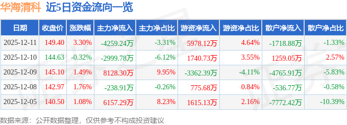 证券之星消息,截至2025年12月11日收盘,华海清科(688120)报收于149.4元,上涨3.3%,换手率2.39%,成交量8.47万手,成交额12.88亿元。