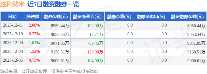 胜科纳米融资融券信息显示,融资方面,当日融资买入196.91万元,融资偿还299.81万元,融资净偿还102.9万元。融券方面,融券卖出0.0股,融券偿还0.0股,融券余量0.0股,融券余额0.0万元。融资融券余额8950.44万元。
