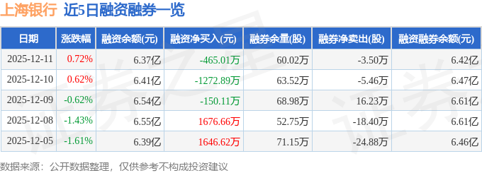 证券之星消息,截至2025年12月11日收盘,上海银行(601229)报收于9.73元,上涨0.72%,换手率0.27%,成交量38.91万手,成交额3.79亿元。