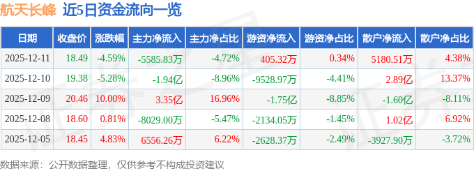 证券之星消息,截至2025年12月11日收盘,航天长峰(600855)报收于18.49元,下跌4.59%,换手率13.54%,成交量63.33万手,成交额11.84亿元。