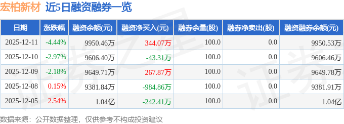 宏柏新材融资融券信息显示,融资方面,当日融资买入1083.94万元,融资偿还739.87万元,融资净买入344.07万元。融券方面,融券卖出0.0股,融券偿还0.0股,融券余量100.0股,融券余额0.06万元。融资融券余额9950.53万元。