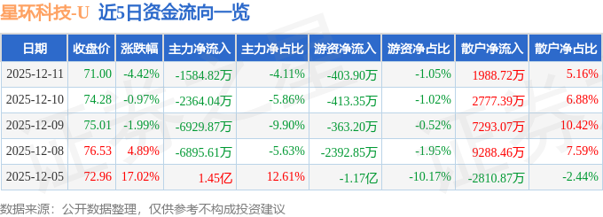 证券之星消息,截至2025年12月11日收盘,星环科技(688031)报收于71.0元,下跌4.42%,换手率5.7%,成交量5.36万手,成交额3.85亿元。
