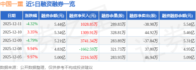 证券之星消息,截至2025年12月11日收盘,中国一重(601106)报收于3.54元,下跌4.32%,换手率3.87%,成交量265.45万手,成交额9.64亿元。