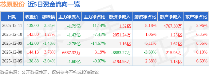 12月11日的资金流向数据方面,主力资金净流出1.79亿元,占总成交额11.14%,游资资金净流入1.32亿元,占总成交额8.18%,散户资金净流入4767.3万元,占总成交额2.96%。
