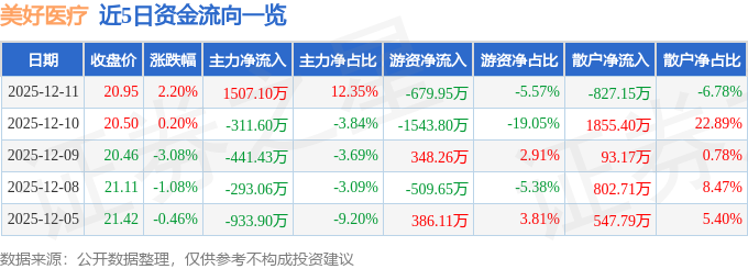 证券之星消息,截至2025年12月11日收盘,美好医疗(301363)报收于20.95元,上涨2.2%,换手率1.56%,成交量5.82万手,成交额1.22亿元。