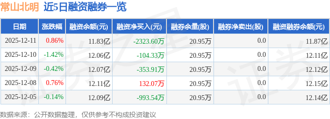证券之星消息,截至2025年12月11日收盘,常山北明(000158)报收于21.01元,上涨0.86%,换手率3.68%,成交量58.47万手,成交额12.14亿元。