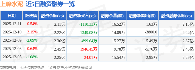 证券之星消息,截至2025年12月11日收盘,上峰水泥(000672)报收于11.19元,上涨0.54%,换手率2.11%,成交量20.49万手,成交额2.29亿元。