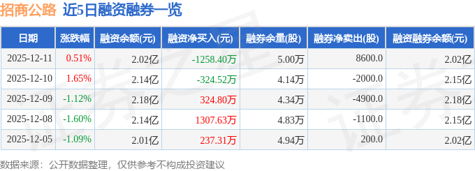 招商公路融资融券信息显示,融资方面,当日融资买入867.92万元,融资偿还2126.32万元,融资净偿还1258.4万元。融券方面,融券卖出9000.0股,融券偿还400.0股,融券余量5.0万股,融券余额49.55万元。融资融券余额2.02亿元。